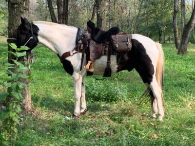 Proponiamo castrone 8 anni. Ottimo cavallo da trekking, sicuro ed instancabile, 1.68 al garrese.