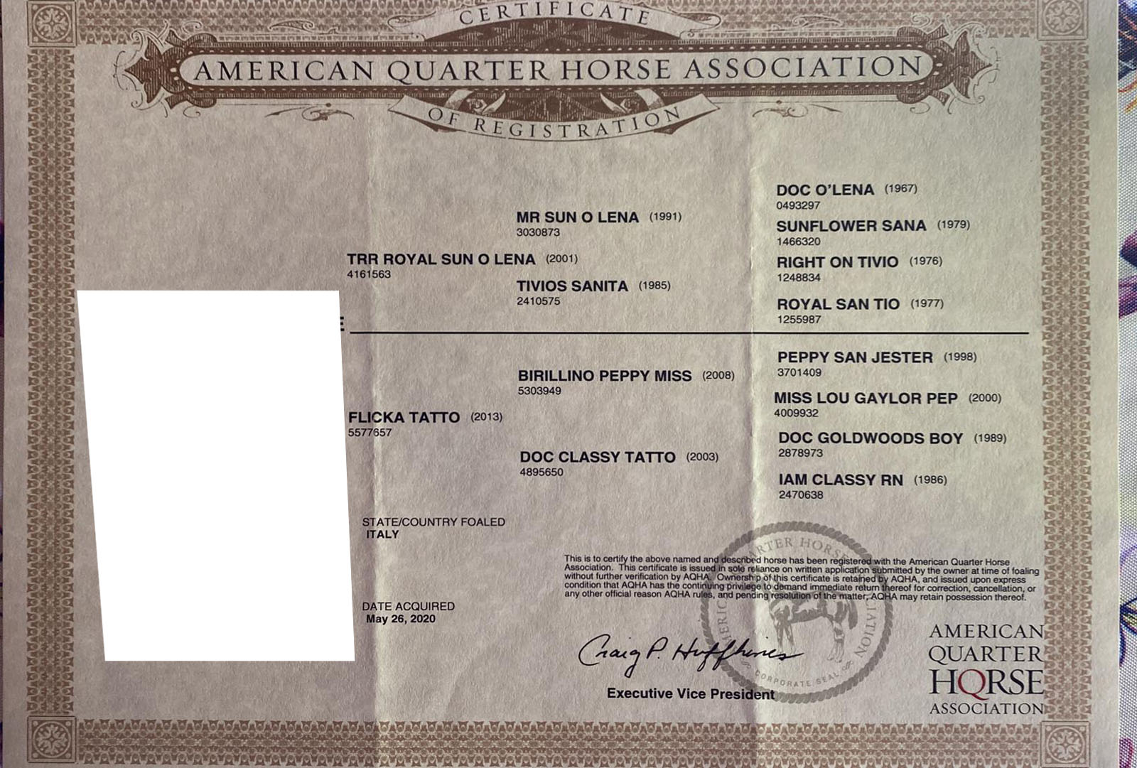 Cavallo con Documento americano